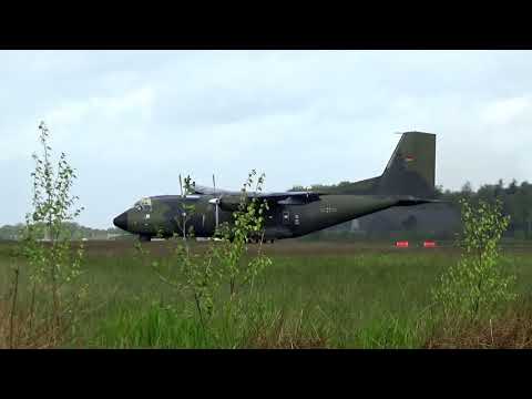 A Bundeswehr C-160 Transall landing and taking off at airfield Jever in Northern Germany on May 21st, 2021. Transall aircraft are in service for the German army for 50 years now and will be retired this year. The Jever airfield was closed in 2013, but is used occasionally for exercises.
