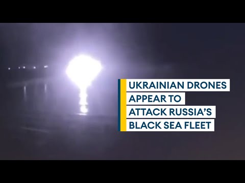 Incredible footage is believed to show how Ukraine targeted Russia's Black Sea fleet in a combined attack using air and sea drones – thought to be the first assault of its kind.