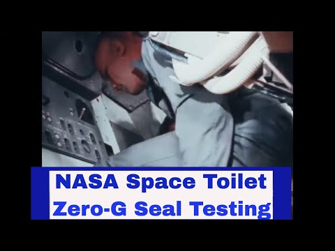 Dating to 1970, this silent NASA footage shows zero gravity flight tests of a toilet system for containing urine and fecal matter in space. The point of the test was to apparently demonstrate how an astronaut would sit on the toilet in space (using a strap or belt) and how the seal on the device would work (although, in these particular tests, no actual #1 or #2 occurred). These tests were conducted aboard a reduced gravity aircraft, probably NASA's Convair C-131 Samaritan or possibly a KC-135 aircraft (this type of aircraft appears visible at the top of frame at the start of the film at :16). In the footage, test subjects are in simulated weightless conditions. The primitive, canister-like toilet device shown must have been a proposed prototype, probably made by Republic Aircraft. It does not appear that it ever made it into space. During the Apollo missions, astronauts used a cuff / condom type system for urine collection and a bag that taped to the buttocks for fecal collection. It's unknown why this particular device was not adopted, but most likely it has to do with its size and weight.