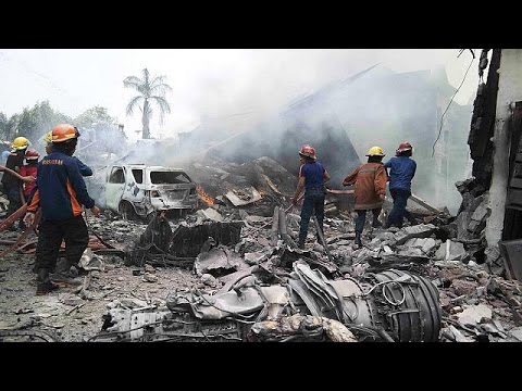 READ MORE : http://www.euronews.com/2015/06/30/dozens-killed-as-indonesian-military-plane-crashes-on-houses-in-sumatra
