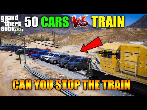 GTA 5 STOP THE TRAIN | TRAIN VS 50 CARS | CAN I STOP THE TRAIN IN GTA 5? | HINDI GAMEPLAY