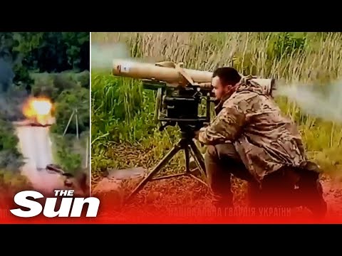 Ukrainian Guardsman blasts a Russian armoured vehicle with a Corsar guided missile launcher from a distance of 1.5 miles.